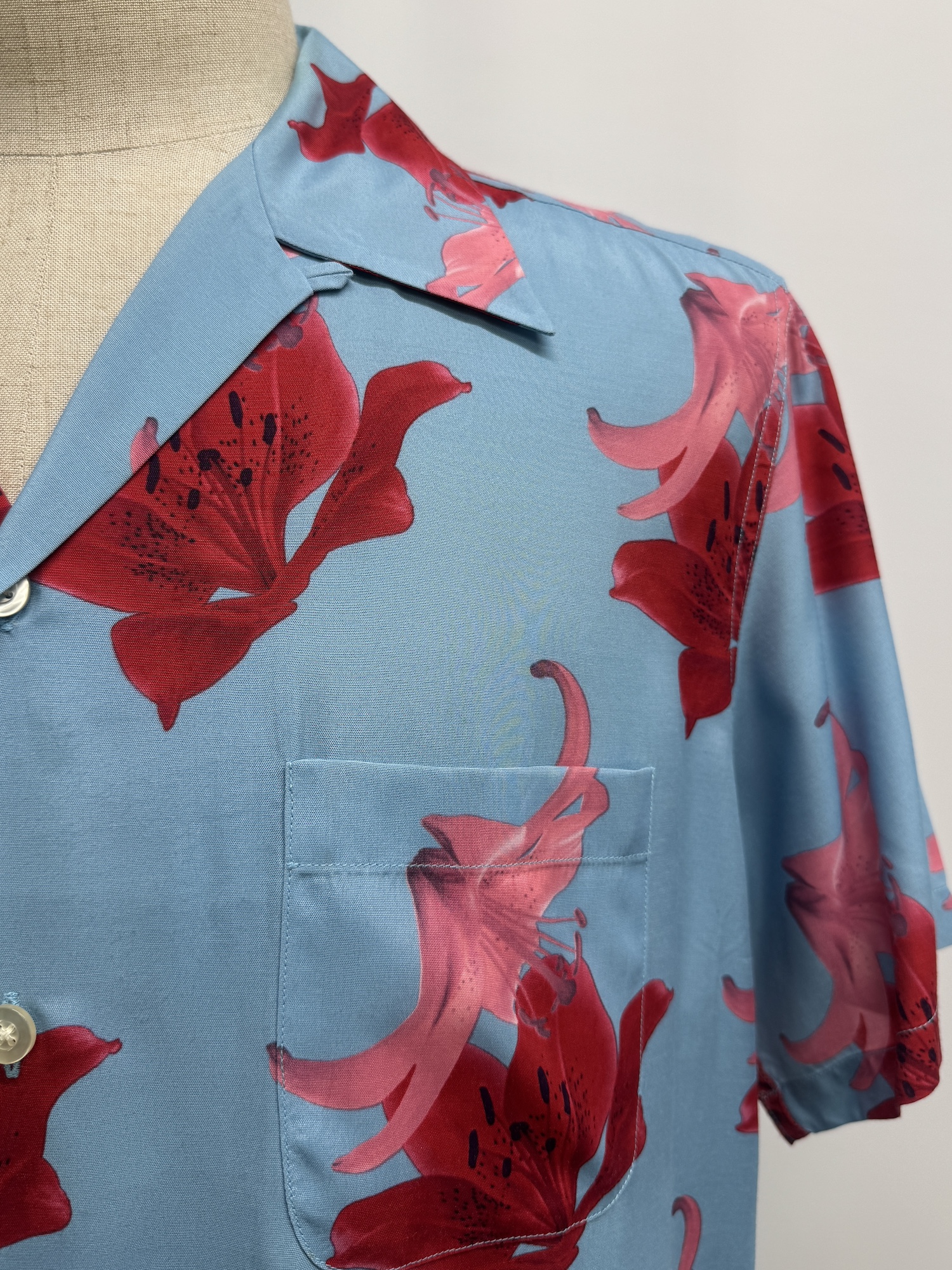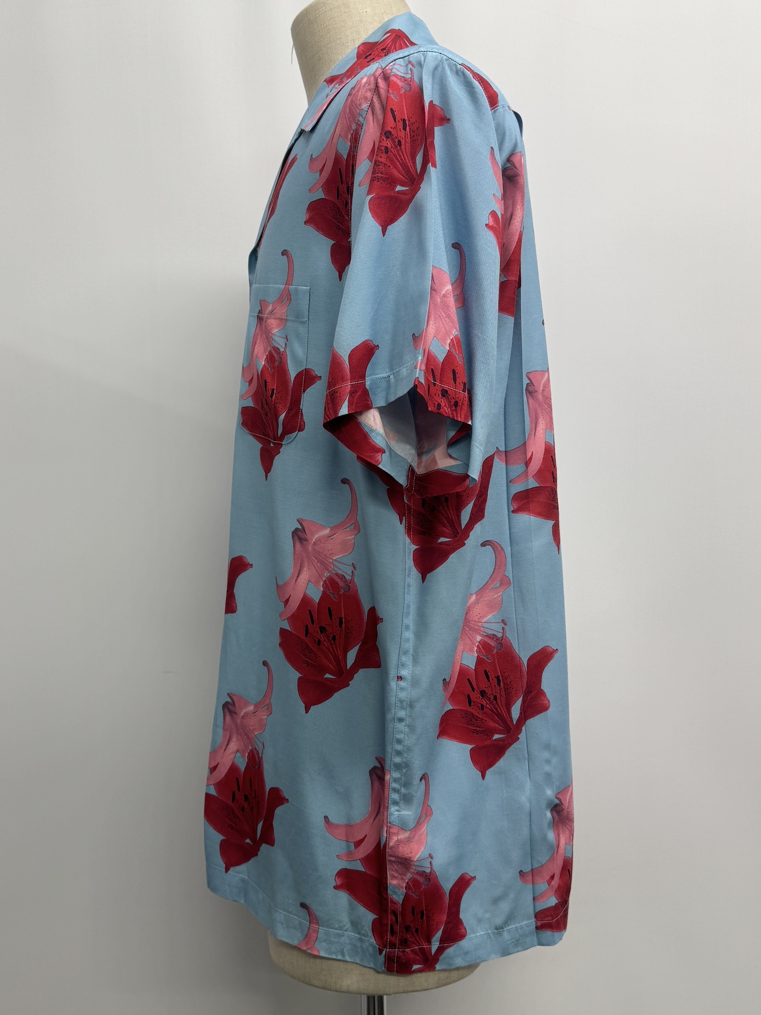 レーヨン、花柄、オープンカラー、半袖