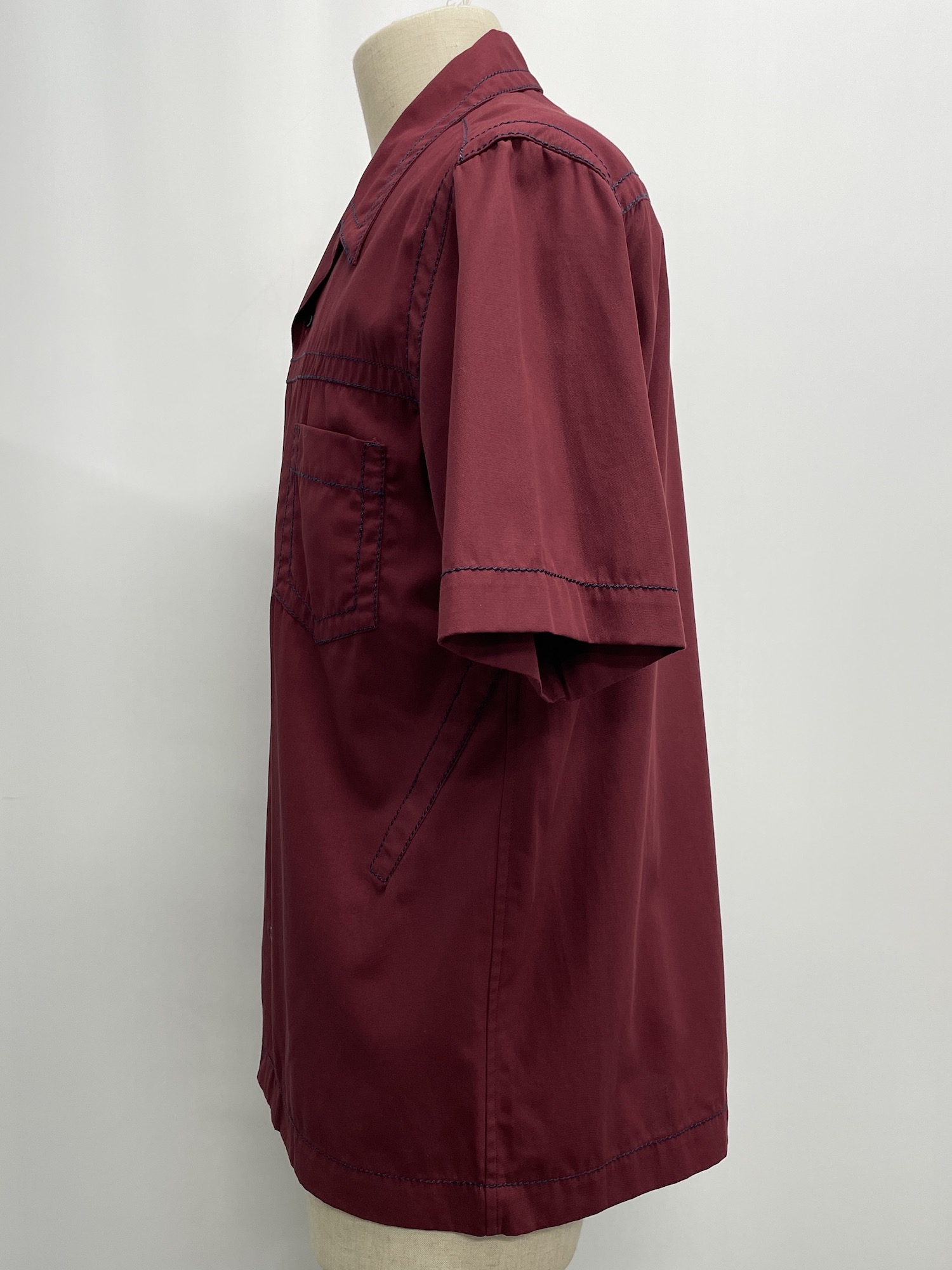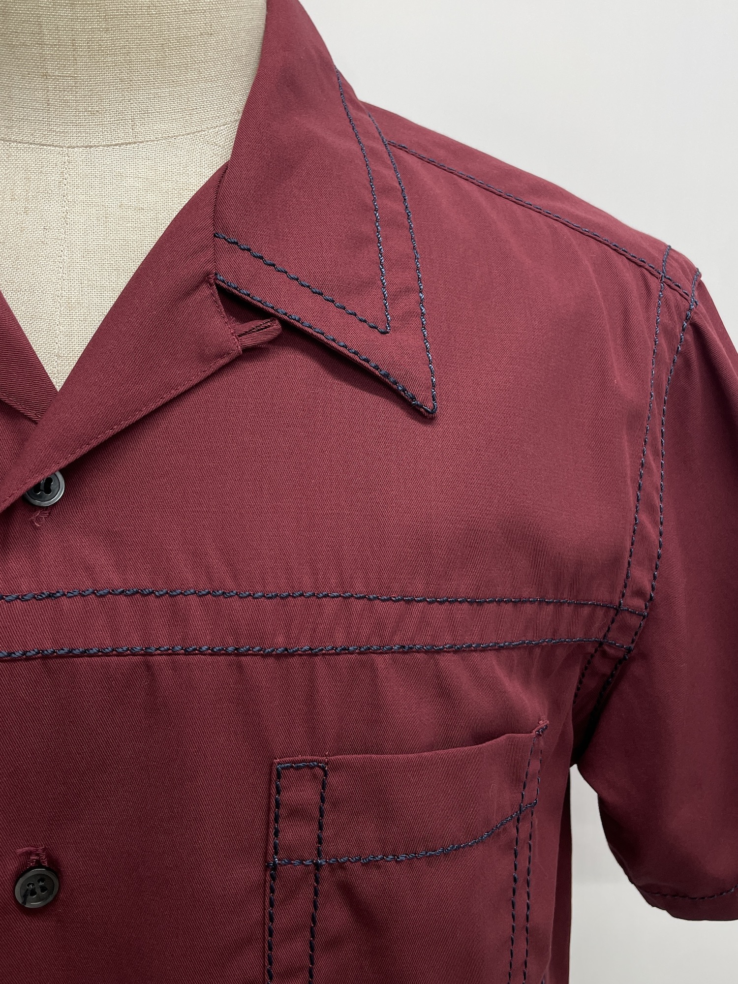 無地、オープンカラー、ステッチ