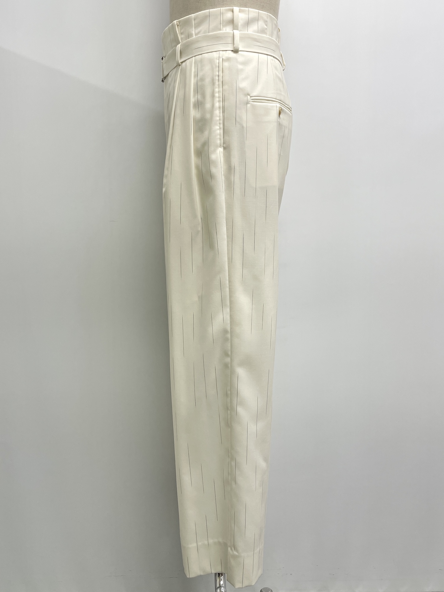 ウール、ストライプ、ワイドパンツ