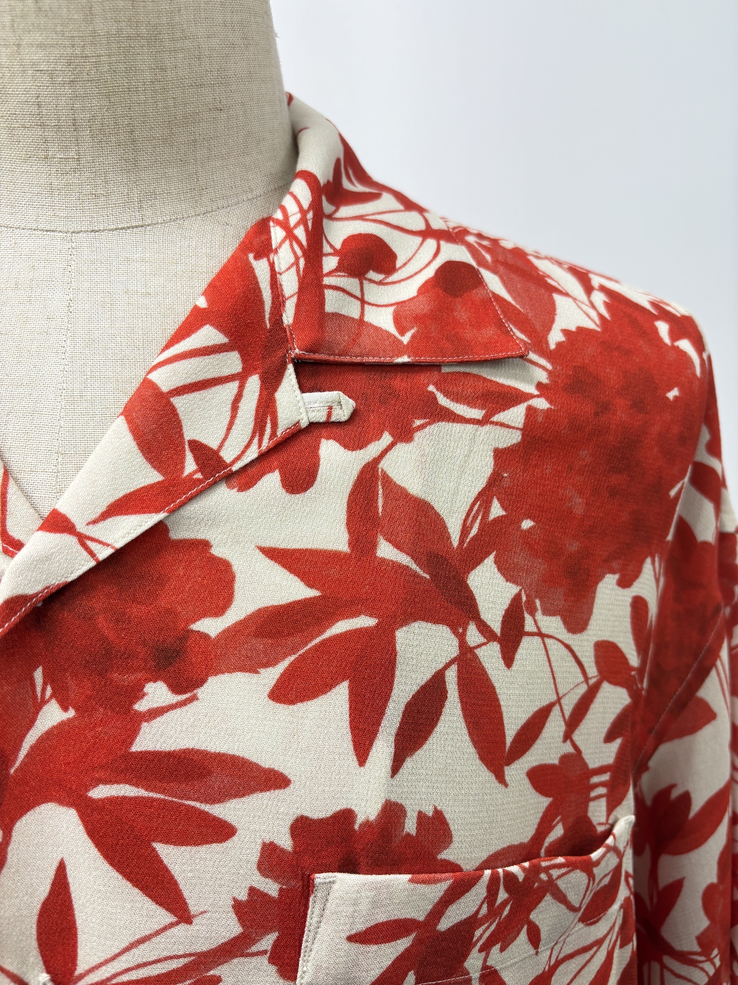 オープンカラー、左胸ポケット