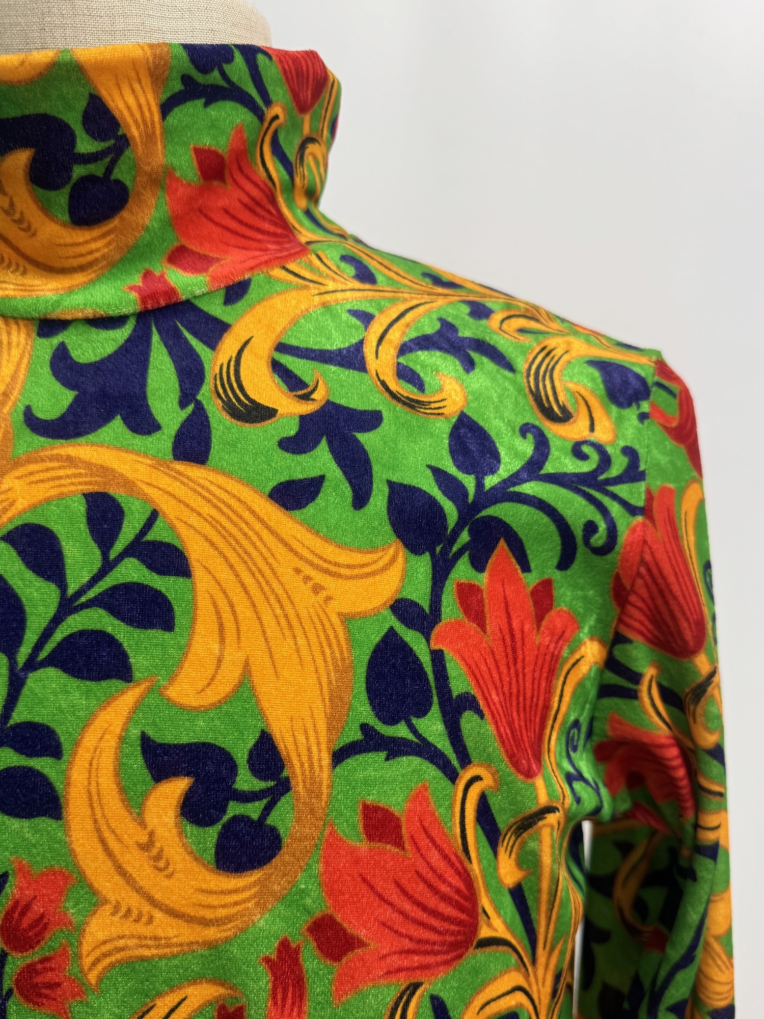 花柄、ハイネック、長袖