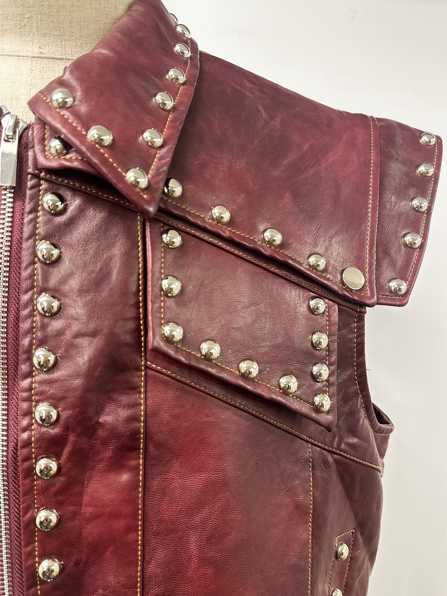 無地、スタッズ、フロントジップ