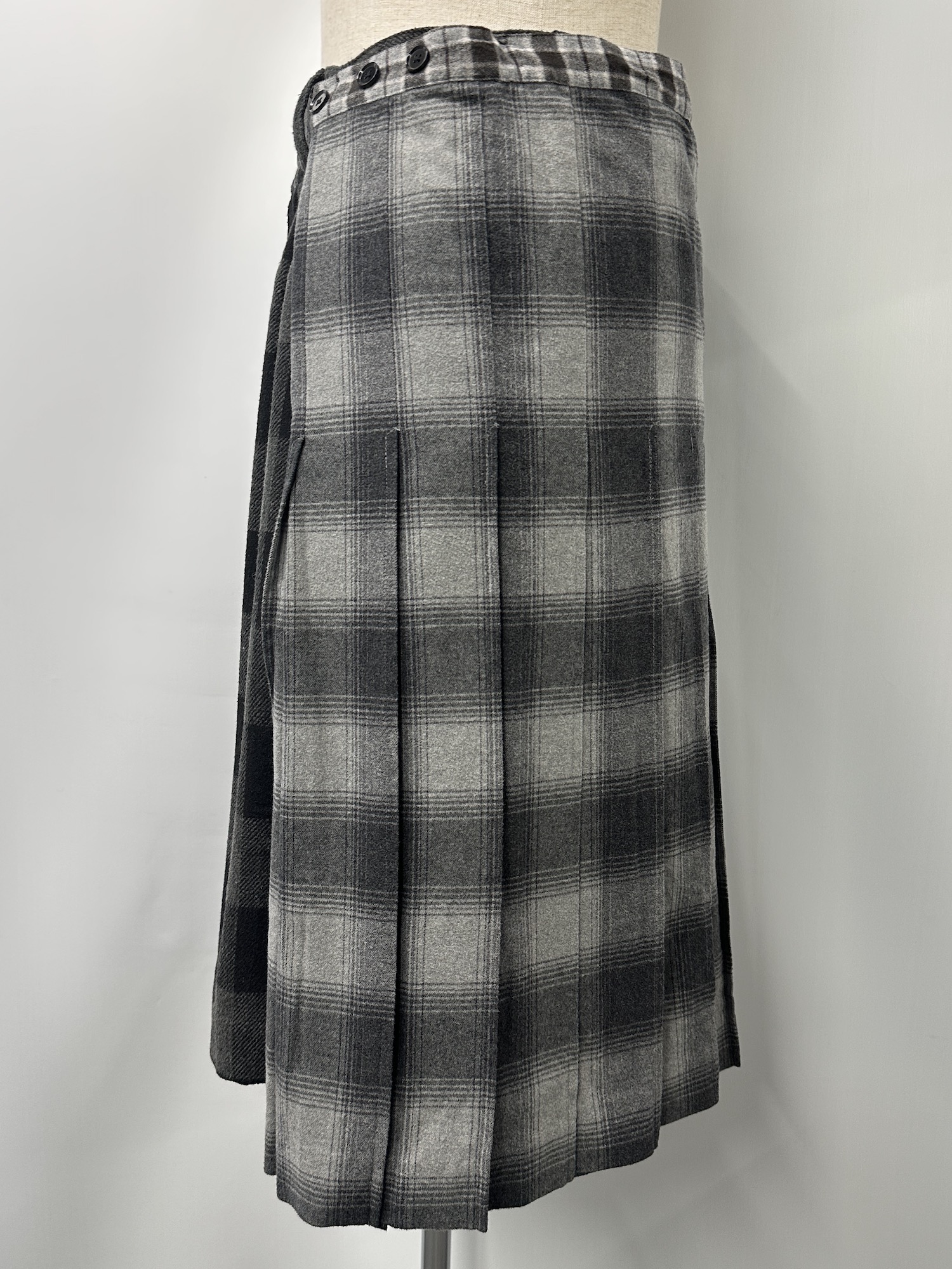 ポリ、レーヨン、チェック、プリーツ