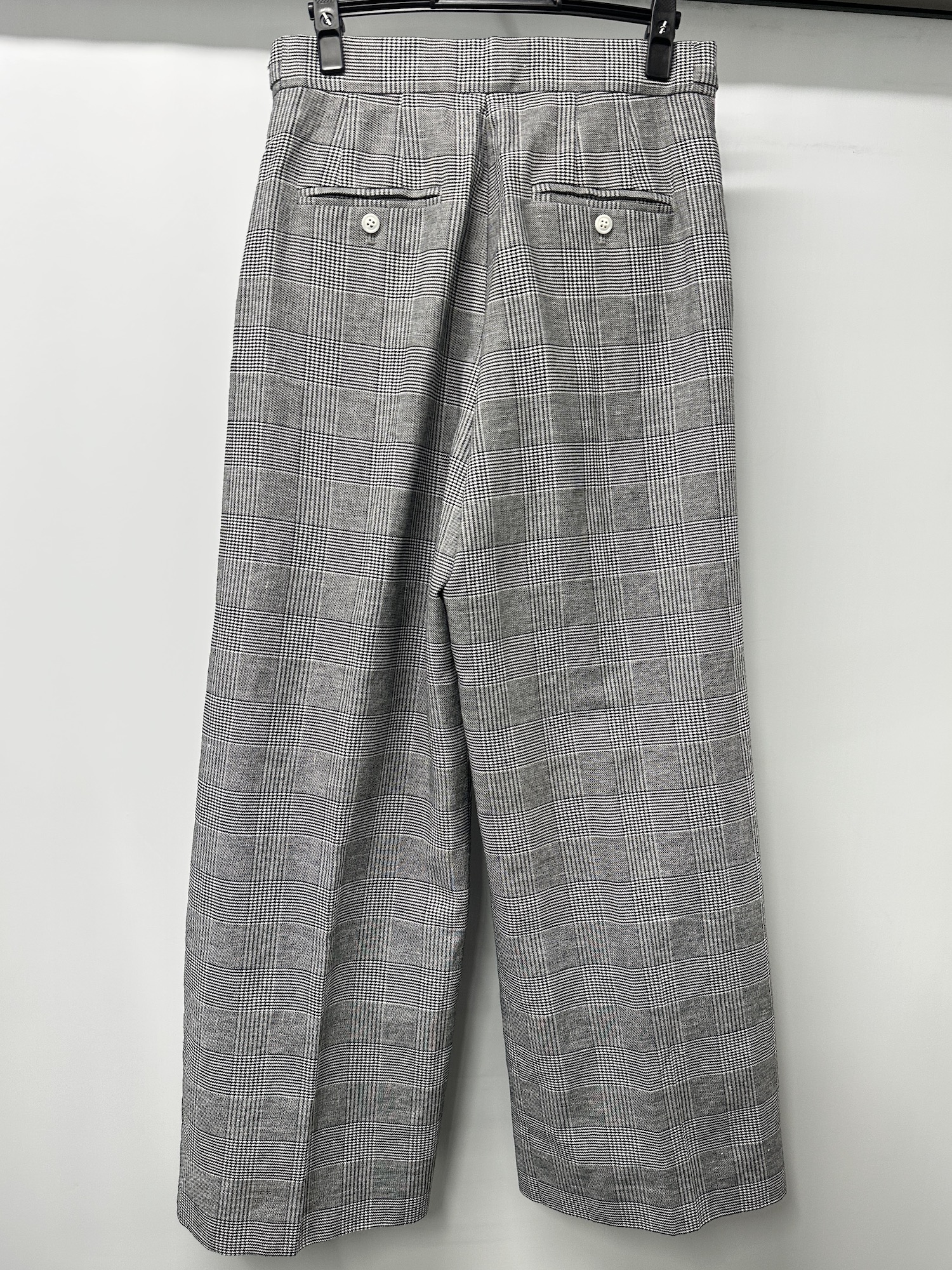 コットン、麻、チェック、ストレート